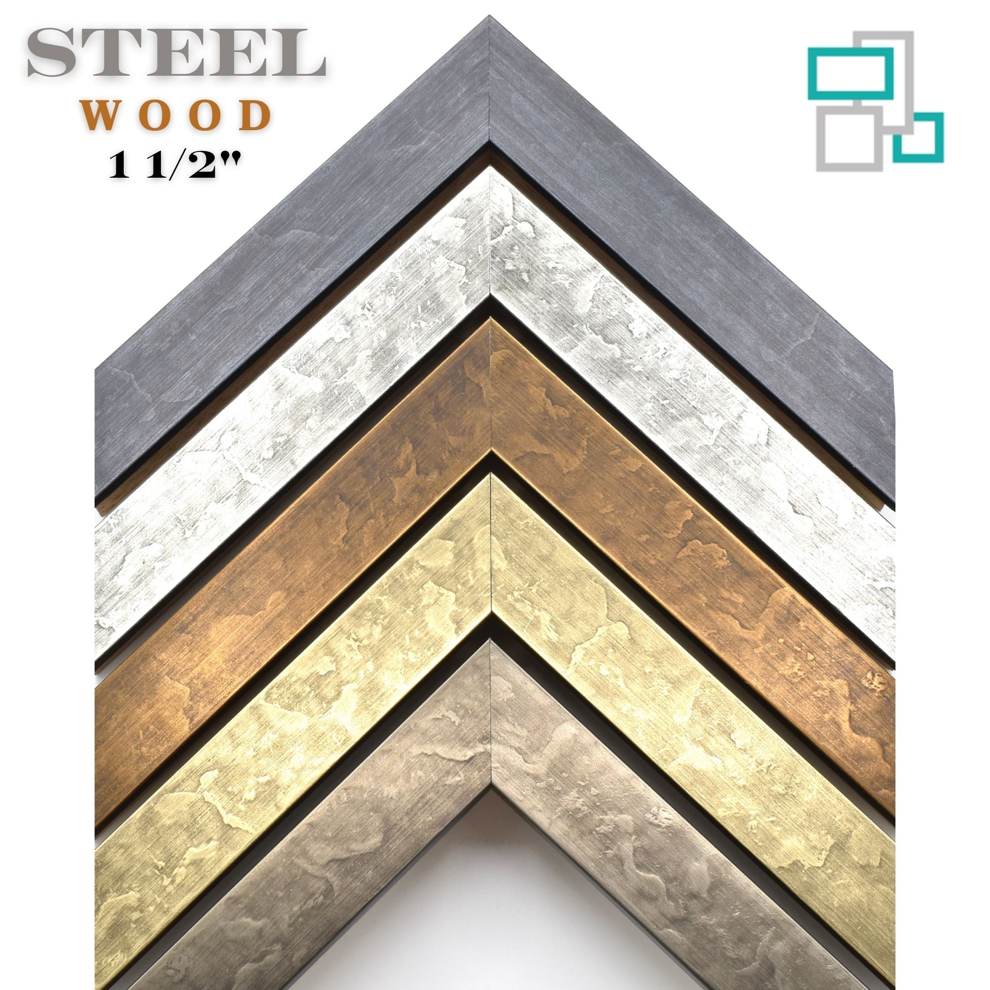 Steel Wood Custom Picture Frame 1 1/2" - Brass - Wide Version